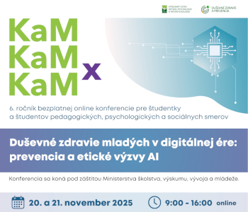 Prednáška odznela 21. novembra 2025 v rámci 6. ročníka online konferencie 3xKaM, ktorá sa konala 20. – 21. novembra 2025 a bola určená študentom vysokých škôl pedagogických, psychologických a sociálnych smerov i odborným a pedagogickým zamestnancom pôsobiacim v školskom systéme na Slovensku i v Českej republike.
